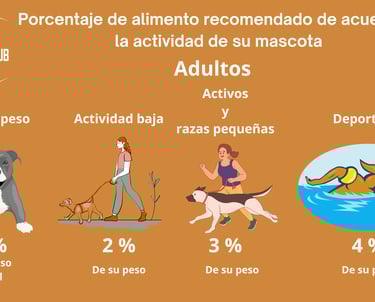 Siempre consulta a tu veterinario, sobre todo si tu mascota tiene alguna condición especial. Sin embargo, en la mayoría de los casos este cuadro realizado sobre la base de la actividad de tu mascota, funciona muy bien para determinar la cantidad de alimento diario que debe comer.