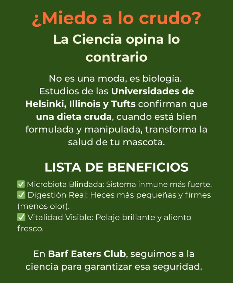 Es normal sentir miedo. Cuando escuchas "carne cruda", lo primero que viene a la mente son bacterias, salmonela y riesgos. Nos han enseñado a temerle a lo crudo, y como dueños responsables, queremos proteger a nuestra familia peluda.